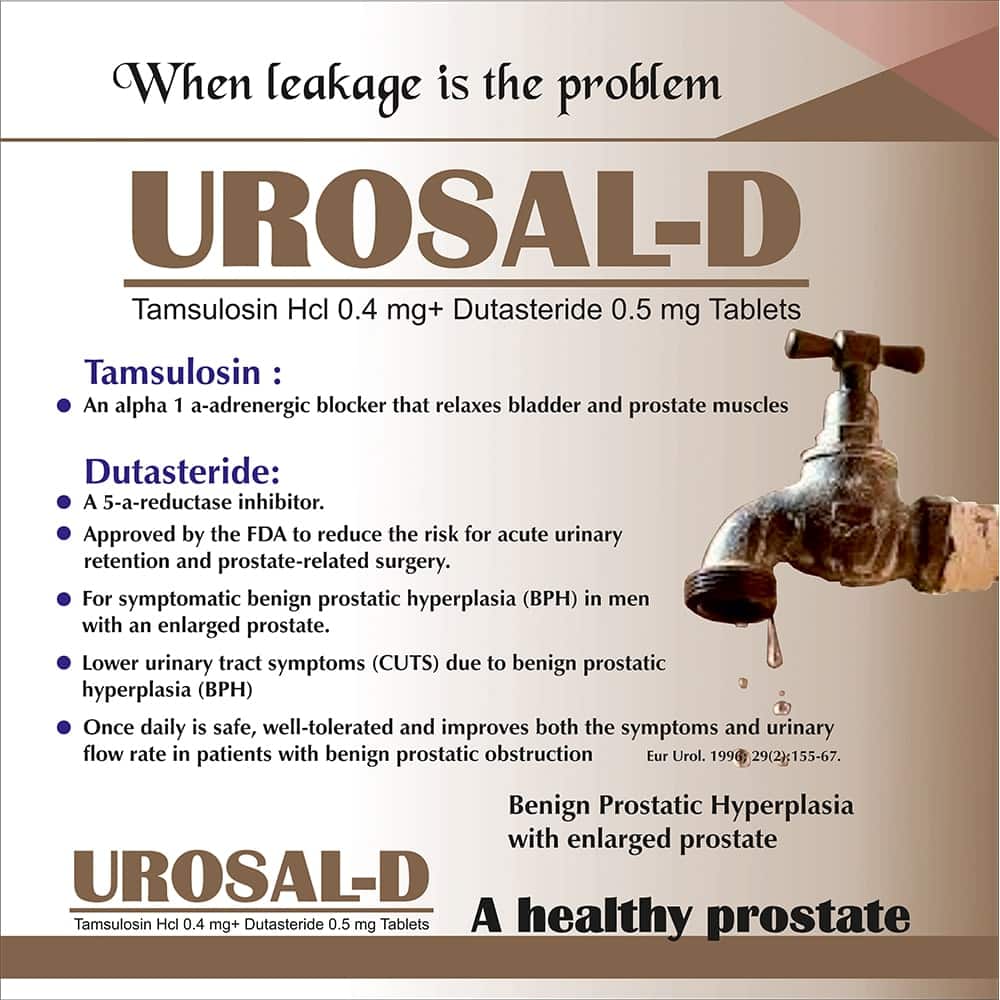 Salveo Lifecare manufactures and supplies Tamsulosin Hydrochloride and Dutasteride Tablets. They offer it under the brand name Urosal-D for PAN India delivery at an affordable price. Contact them today.
